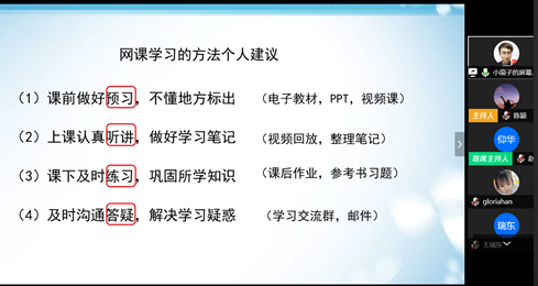 为进一步落实教育部“停课不停学、停课不停教”的要求,全面掌握开学以来学生在网课学习上遇到的问题和困惑,促进师生之间交流沟通,从而更好地提升教学和学生课堂学习效果,伟德betvlctor1946于4月8日下午召开了线上学习师生座谈会,学院党政领导、专业课教师代表、辅导员、班主任、班导师和本科生各年级学生代表及研究生学生代表等70余人参加了座谈会,座谈会由党委副书记初彩霞主持。