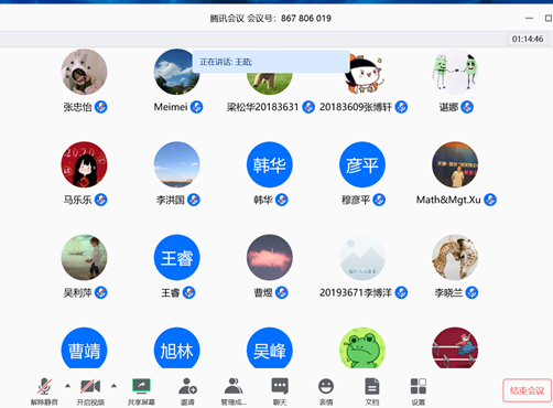 座谈会上,各年级学生代表分别就在线课堂学习的整体感受、学生的学习效果、遇到的困难和困惑等表达了自己的意见和建议;接下来,教师代表王丽艳老师和单亭亭老师分别围绕学生们关心的在线学习的问题,进行了交流和反馈,同时针对“如何提高同学们的在线课堂学习效果”提出了自己的意见和建议,他们鼓励同学们要做好预习、认真听讲、勤于练习、及时与老师沟通答疑,以新时代青年的责任感约束自己,努力学习、共克时艰。