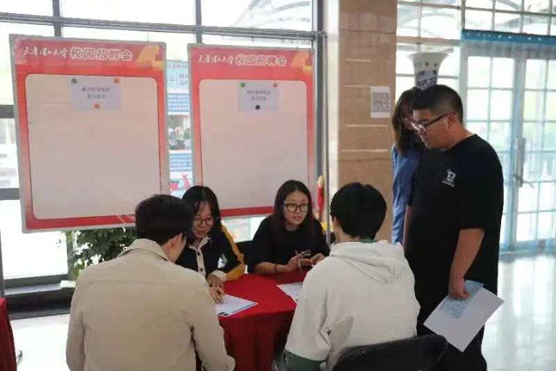 本次双选会现场专门设置了简历面诊、面试培训就业指导服务,来自两个学院的就业工作辅导员现场为同学们修改简历,提供各项就业指导咨询。