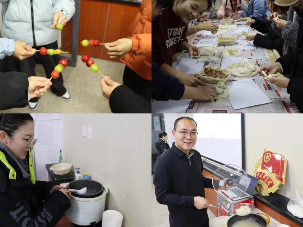 师生共同包饺子、做糖葫芦,共享冬日温暖时光,在制作中国传统美食的过程中引导同学们主动学习传统文化,发扬民族精神,鼓励同学们坚定理想信念,珍惜学习机会,心怀感恩、脚踏实地、立志成才。